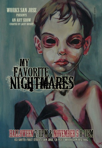 I’ll be showing my babies at “My Favorite Nightmares” art show tonight, October 31st, 7pm – 9pm at Works Gallery in DownTown San Jose.